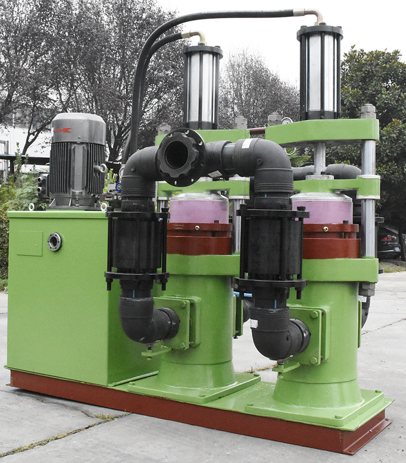 陶瓷柱塞泵工作原理。根據(jù)壓濾機(jī)工作特點(diǎn),進(jìn)料,升壓,保壓過(guò)濾的特點(diǎn),采用單電機(jī)帶雙油泵,雙液壓系統(tǒng)工作。進(jìn)料階段,雙油泵...